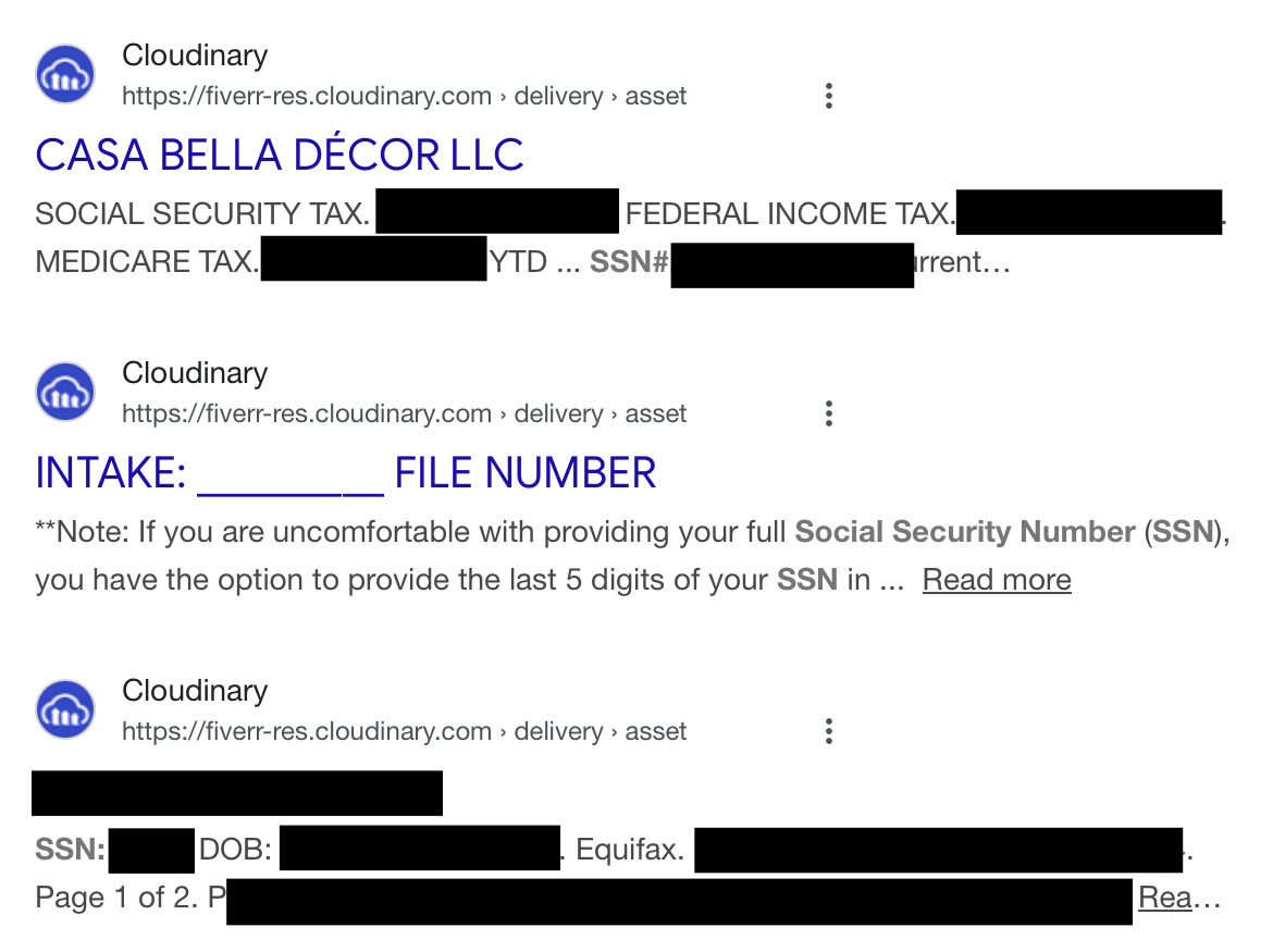 The researchers also claims that “Fiverr actively buys Google Ads for keywords like "form 1234 filing" despite knowing that it does not adequately secure the resulting work product, causing the preparer to violate the GLBA/FTC Safeguards Rule.”