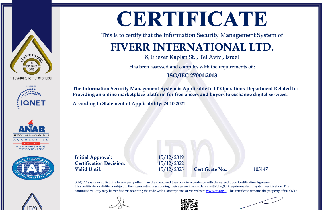 In Cybernews’ article on the subject, they point out that, ironically, Fiverr’s own ISO 27001 certification for information security, expired of course.